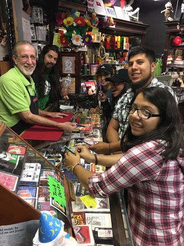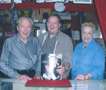 Doc Grimes greets internationally acclaimed magicians Mark Wilson and his wife Nani Darnell Wilson at the Queen of Hearts Magic Emporium in Plano, Texas (2007)