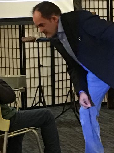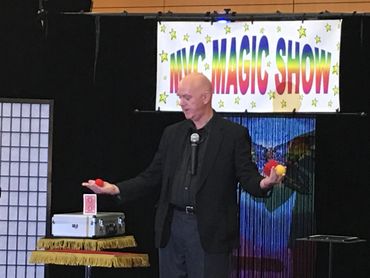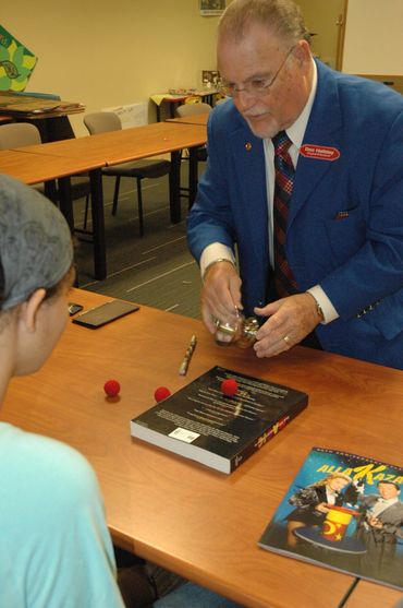 MVC Magic Club sponsor Doc Grimes performs his signature cups and balls routine.