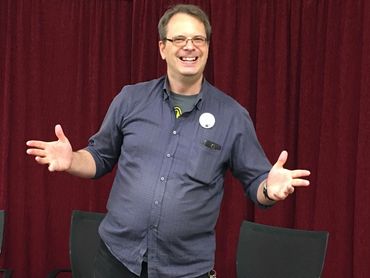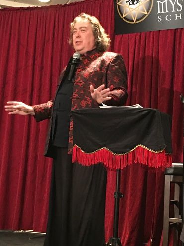 Doc Grimes calls the "voice of the universe" for a message at Magic Etc. & Fort Worth Costume.